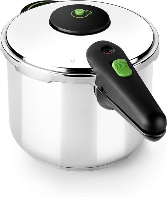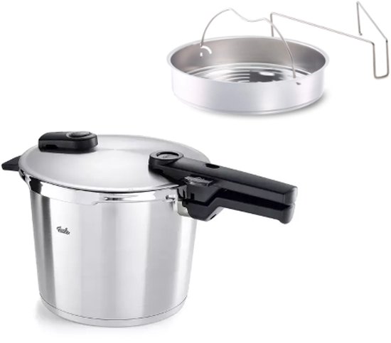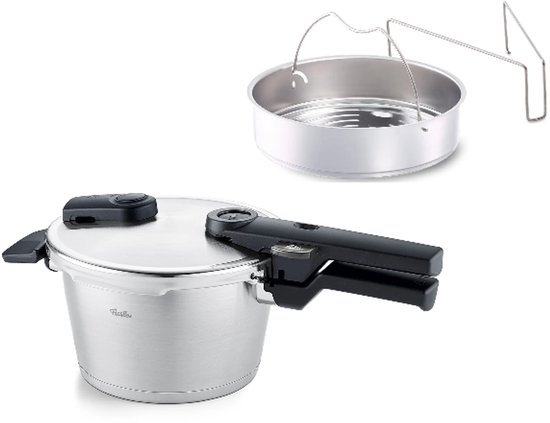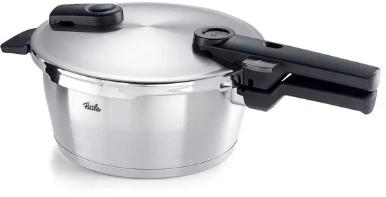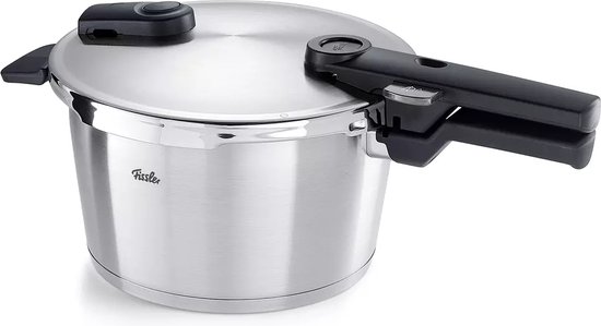 De Fissler snelkookpan is uitgerust met de super-thermic bodem: een meerlaagse constructie die speciaal is geoptimaliseerd voor inductie. De warmte wordt razendsnel en gelijkmatig verdeeld over de hele bodem, waardoor aanbranden zelfs bij langere kooktijden nauwelijks voorkomt. Fissler biedt twee kookniveaus: een fijne stand voor vis en groenten, een snelle stand voor vlees en stoofgerechten. De aanschafprijs is hoger dan gemiddeld, maar de levensduur van 15 jaar of meer maakt dat goed.